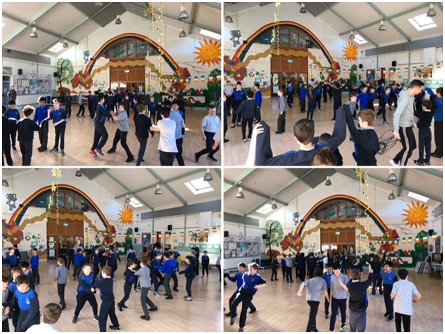 Bhí na páistí ag céiliúradh Seachtain na Gaeilge i Scoil Chronáin Naofa. Bhí gach duine ag obair go dian ag foghlaim dánta, amhráin, damhsaí agus ceol as Gaeilge. Bhaineamar an-sult as an gcéilí inné.
